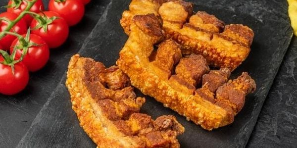 Pieces of pork belly roasted and seasoned with Colombian spices, preserving its juiciness and crispy skin.